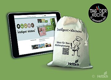 In diesem Jahr enthalten die Hettich-Aktionspakete praktische, wiederverwendbare Obst- und Gemüsebeutel aus 100% Oeko-Tex-Baumwolle. Der QR-Code auf jedem Beutel führt direkt zur Ratgeber-Webseite „Intelligent Kitchens“ von Hettich: Hier gibt es viele Inspirationen und praktische Tipps für alle, die ihre Küche von A bis Z optimal planen möchten. Jedes Aktionspaket umfasst jeweils 50 Give-Aways. Noch bis zum 15. Oktober 2022 kann der Küchenhandel die Pakete kostenfrei bei Hettich anfordern: home-info(at)hettich.com