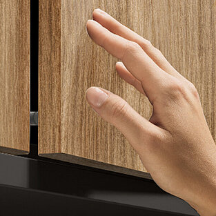 Griffloses Möbeldesign vermittelt Klarheit und Leichtigkeit. Push to open Silent für Drehtüren bietet Komfort, der seine Nutzer verwöhnt: Leichtes, zuverlässiges Öffnen. Sanftes, gedämpftes Schließen. Push to open Silent lässt sich einfach in jedem Korpus nachrüsten und ist für alle gängigen Schrankkonstruktionen geeignet. Ganz ohne Stromanschluss. 100 % Komfort, null Kabel.