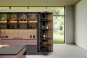 Ob raumhohe Möbel oder kleine Vitrinen-Elemente – mit FurnSpin wird alles drehbar. Kann man die Stauraumnutzung neu erfinden? Hettich hat es getan: Die Beschlag-Innovation FurnSpin räumt auf mit alten Gestaltungsmustern und bringt kreativen Schwung ins Möbeldesign. Offene Türen oder Klappen stehen nicht mehr im Weg – hier wird spielend leicht der Großteil des Korpus bewegt. Mit einem eleganten Dreh offenbart das Möbel sein Innenleben. Mit einem weiteren Dreh verschwindet das Schrankinnere aus dem Blick, und das Möbel zeigt wieder geschlossene Fronten. Dabei bleibt der Beschlag nahezu im Verborgenen und bietet alle bekannten Komfortfunktionen wie etwa Einzugsdämpfung oder Push to open für griffloses Möbeldesign.