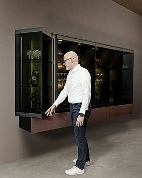 Premium-Hängevitrine: Perfektes Zusammenspiel aus Glas und Licht.
