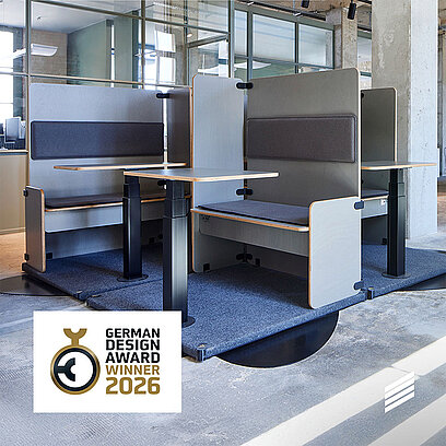 This Meet-The furniture concept includes two seating units that can be flexibly rotated to enable spontaneous meetings or retreats. It promotes easy switching between collaboration and focus.