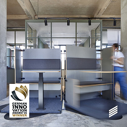 When interior furnishings and workstations are able to turn in rigidly defined office structures, you get entirely new design and usage concepts. Presenting RoomSpin, Hettich provides a unique, movable system base for transforming furniture and rooms. This innovation and its huge potential for change has now brought RoomSpin the German Innovation Award 2025 in the ”#W2 Excellence in Business to Business – Office Solution” category.