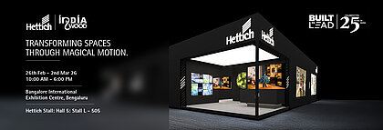 At Indiawood 2026, experience a showcase of our vision for the future of living and working spaces under the theme “Transforming Spaces through Magical Motion.” As Hettich celebrates 25 years in India, a proud journey of innovation, trust, and partnership, we mark the milestone by continuing to showcase magical interior experiences and revealing the magic in motion. We seamlessly blend smart design with precision engineering, turning everyday environments into experiences of magic, comfort, efficiency, and aesthetics.