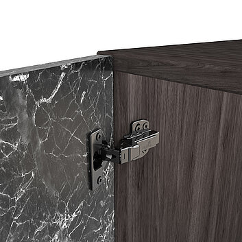 The Onsys Magma Black range features hinges and mounting plates for all common mounting situations and also for unique applications, such as for thin doors from 10 mm door thickness, thick doors with narrow reveals, and doors with mitred edges all round.