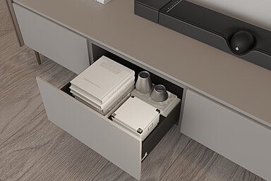 High-quality office drawer system for pedestals and wall unitsQuick to process double-walled complete steel drawersRange of material trays and office-compatible interior organisationStop Control locking system can be easily inserted without grooving the cabinet sideConcealed runner, soft-close with Silent System, or handleless with Push to open
